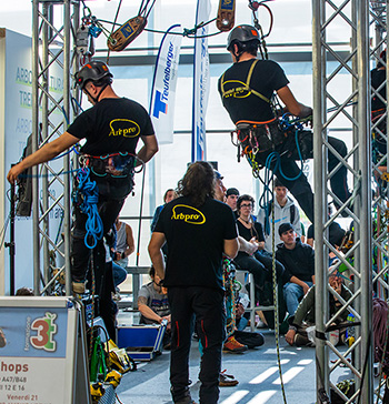 Area interna al padiglione destinata a dimostrazioni dal vivo, sessioni tecniche su salvaguardia, potatura e valutazione della sicurezza degli alberi, metodi d’intervento e utilizzo di accessori, utensili, attrezzature e macchinari. In collaborazione con Formazione 3T.