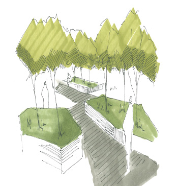 Un viale verde lungo oltre 100 metri interpreta e racconta tipologie di paesaggio urbano sostenibile attraverso cinque ambientazioni scenografiche: uno spazio che unisce estetica, funzionalità e creatività diventa un invito alla riflessione sul rapporto e il legame tra ambiente, risorse naturali, città, socialità e innovazione.