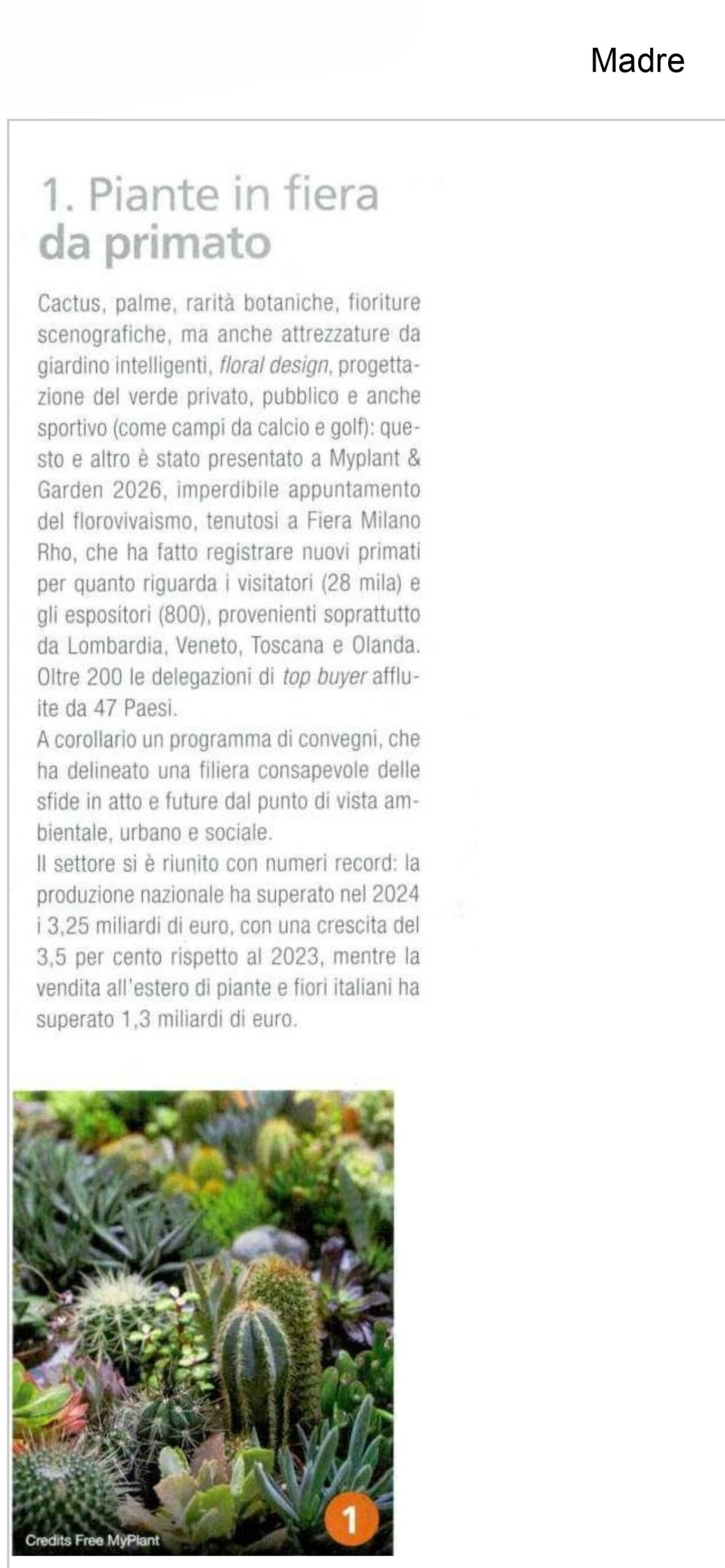 Solo nella settimana di svolgimento di Myplant 2026 sono state registrate più di 3500 uscite mediatiche, con un’audience potenziale a livello mondiale di 600+ milioni di persone.